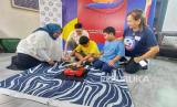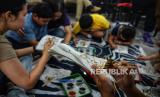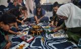 Para peserta mengikuti proses membatik di Aula Serbaguna Kedutaan Besar Filipina, Jakarta, Ahad (1/9/2024). Menandai 75 tahun hubungan diplomatik, persahabatan, dan pertukaran budaya antara Indonesia dan Filipina, Philippine Women (FOTO : Republika/Prayogi)
