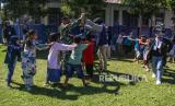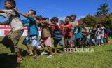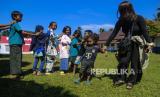 REPUBLIKA.CO.ID, TERNATE -- Sejumlah relawan bermain bersama anak-anak pengungsi korban banjir bandang saat terapi trauma healing di SMK Negeri 4 Kota Ternate, Maluku Utara, Ahad (1/9/2024).