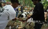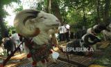 Puluhan domba garut menunggu giliran utuk bertarung saat acara seni ketangkasan domba atau adu domba Wali Kota Bandung Cup 2024 dalam rangka Hari Jadi Kota Bandungari (HJKB) Ke-214, di Lapangan Pamidangan Babakan Siliwangi (Baksil), Kota Bandung, Jawa Barat, Ahad (1/9/2024). Selain menjadi ajang unjuk kebolehan ketangkasan domba Garut sebagai salah satu seni budaya lokal, juga sebagai momen silaturahim Himpunan Peternak Domba dan Kambing Indonesia (HPDKI), serta memberikan kontribusi signifikan terhadap pertumbuhan ekonomi lokal. (FOTO : Edi Yusuf)