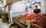 Pedagang menata dagangan di Pasar Rumput, Jakarta, Senin (2/9/2024). Badan Pusat Statistik (BPS) mencatat Indonesia mengalami deflasi sebesar 0,03% (month to month/mtm) pada Agustus 2024. Ini adalah deflasi empat bulan beruntun sejak Mei 2024. BPS menilai, deflasi yang terjadi selama empat bulan berturut-turut di sepanjang 2024 utamanya disebabkan oleh pasokan yang berlimpah. (FOTO : Republika/Prayogi)