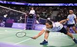 Pebulu tangkis ganda campuran Indonesia Leani Ratri Oktila (kiri) bersama rekannya, Hikmat Ramdani (kanan) berusaha mengembalikan kok ke arah lawannya sesama Indonesia Fredy Setiawan dan Khalimatus Sadiyah dalam pertandingan final bulu tangkis ganda campuran SL3-SU5 Paralimpiade 2024 Paris di Porte de la Chapelle Arena, Paris, Prancis, Senin (2/9/2024). Hikmaat dan Ratri menang dengan skor 21-16, 21-15 sekaligus memastikan diri meraih medali emas, sementara Fredy dan Khalimtus meraih medali perak.  (FOTO : ANTARAFOTO/Agung Wahyudi)