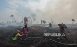 REPUBLIKA.CO.ID, JAMBI -- Petugas Manggala Agni Daops Sumatera XI Bukit Tempurung dibantu anggota Masyarakat Peduli Api Desa Catur Rahayu menyiapkan selang saat memadamkan kebakaran lahan di perbatasan Muaro Jambi dengan Tanjung Jabung Timur, Rantau Panjang, Muaro Jambi, Jambi, Senin (2/9/2024).