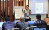 Coorporate Sustainability Trainer and Carbon Advisor Muhammad Faris Naufal, memaparkan materi saat workshop accounting carbon dalam rangkaian acara Sehati untuk Bumi di Hotel Le Meridien, Jakarta, Selasa (3/8/2024). Workshop tersebut membahas tentang Standar Internasional dalam Perhitungan dan Pelaporan Gas Rumah Kaca (GRK). Kegiatan tersebut merupakan rangkaian acara Republika dalam program Sehati untuk Bumi yang berfokus pada isu-isu lingkungan dan keberlanjutan sebagai upaya mengambil peran dalam membantu pemerintah untuk mencapai target Net Zero Emission 2060 mendatang. (FOTO : Republika/Thoudy Badai)