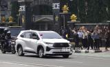 Iring-iringan kendaraan yang membawa Paus Fransiskus saat tiba di Jakarta melewati Jalan Sudirman, Jakarta, Selasa (3/8/2024). (FOTO : Republika/Thoudy Badai)