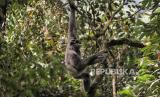 REPUBLIKA.CO.ID, BANDUNG -- Seekor Owa Jawa (Hylobates moloch) berada di dahan pohon di kawasan hutan lindung Malabar, pegunungan Puntang, Kabupaten Bandung, Jawa Barat, pekan lalu.