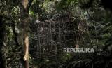 Kandang Owa Jawa (Hylobates moloch) untuk proses adaptasi dengan habitat aslinya dibangun di kawasan hutan lindung Malabar, pegunungan Puntang, Kabupaten Bandung, Jawa Barat, Jumat (30/8/2024). Pertamina Hulu Energi (PHE) melalui PEP Subang Field Regional Jawa sebagai Subholding Upstream Pertamina berkolaborasi dengan Yayasan Owa Jawa melakukan monitoring perilaku Owa Jawa yang telah dilepasliarkan di kawasan hutan lindung Malabar. Pengamatan tersebut dilakukan dari jarak yang aman yakni 15-20 meter dari habitat aslinya di Gunung Puntang. Kegiatan tersebut merupakan program kolaborasi antara PHE bersama Yayasan Owa Jawa sebagai upaya penyelamatan primata langka di Gunung Puntang yang termasuk dalam program pelestarian keanekaragaman hayati. (FOTO : Republika/Thoudy Badai)