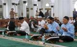 REPUBLIKA.CO.ID, ACEH -- Pasangan bakal calon Gubernur-Wakil Gubernur Aceh Muzaki Manaf /Fadhlullah dan Bustami Hamzah/ Tengku Muhammad Yusuf A Wahab berdoa saat mengikuti proses uji mampu baca Al-quran pada tahapan pemilihan kepala daerah di Masjid Raya Baiturrahman, Banda Aceh, Rabu (4/9/2024).