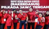 Pasangan bakal calon Gubernur Jawa Tengah Andika Perkasa (tengah) dan bakal calon Wakil Gubernur Jawa Tengah Hendrar Prihadi (ketiga kanan) berpose bersama kader saat menghadiri Rapat Kerja Daerah Khusus (Rakerdasus) di Kantor DPD PDIP Jateng, Semarang, Jawa Tengah, Rabu (4/9/2024). Kegiatan yang dihadiri ratusan kader dan simpatisan PDIP se-Jawa Tengah tersebut membahas strategi untuk memenangkan para pasangan bakal calon Gubernur dan Wakil Gubernur, Wali Kota dan Wakil Wali Kota, serta Bupati dan Wakil Bupati di wilayah Jateng pada Pilkada Serentak 2024. (FOTO : ANTARA FOTO/Makna Zaezar)