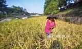 REPUBLIKA.CO.ID, JAKARTA -- Epon Sukarsi (54) memanen padi yang ditanam di lahan kosong kawasan pinggiran Kanal Banjir Timur (KBT), Duren Sawit, Jakarta, Rabu (4/9/2024).