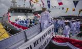 Kepala Staf Angkatan Laut (KSAL) Laksamana TNI Muhammad Ali (tengah) meninjau KRI Butana-878 dan KRI Selar-879 usai diresmikan di Batam, Kepulauan Riau, Kamis (5/9/2024). Kapal jenis Patroli Cepat (PC) 60 meter KRI Butana-878 yang dikomandoi oleh Mayor Laut (P) Mega Yudha Prabowo akan memperkuat jajaran Satuan Kapal Patroli (Satrol) Lantamal V Surabaya dan KRI Selar-879 yang dikomandoi oleh Mayor Laut (P) Agus Solikhin akan memperkuat jajaran Satrol Lantamal VIII Manado. (FOTO : ANTARA FOTO/Teguh Prihatna)