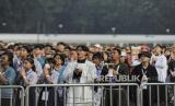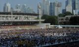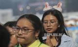 Umat Katolik saat mengikuti misa akbar di Stadion Madya, kompleks Gelora Bung Karno (GBK) Jakarta, Kamis (5/9/2024). Misa akbar yang dihadiri oleh hampir 90 ribu umat Katolik tersebut akan dipimpin langsung oleh Pemimpin Gereja Katolik Dunia yang juga Kepala Negara Vatikan Paus Fransiskus yang berlangsung pukul 17.00 -19.00 WIB. Paus Fransiskus melakukan perjalanan keagamaan dan kenegaraan atau apostolik ke Indonesia selama 4 hari dari tanggal 3-6 September mendatang. Indonesia merupakan negara pertama yang akan dikunjungi Paus Fransiskus selama perjalanan apostoliknya selama 11 hari di kawasan Asia Pasifik. (FOTO : Republika/Thoudy Badai)