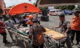 Petugas medis gabungan mengikuti simulasi penanganan darurat potensi megatrust di Kelurahan Tegalkamulyan, Cilacap, Jawa Tengah, Kamis (5/9/2024). Badan Nasional Penanggulangan Bencana (BNPB) menggelar apel kesiapsiagaan dan simulasi mandiri potensi bencana megatrust di empat titik, yakni Pangandaran, Cilacap, Pandeglang, dan Kabupaten Kepulauan Mentawai, Provinsi Sumbar yang dilatarbelakangi prediksi oleh para ilmuan dan Badan Meteorologi Klimatologi dan Geofisika (BMKG) adanya potensi gempa bumi serta tsunami dalam skala megathrust. (FOTO : ANTARA FOTO/Idhad Zakaria)