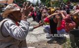 REPUBLIKA.CO.ID, CILACAP -- Warga mendengarkan instruksi evakuasi melalui Handy Talky yang dipegang oleh relawan siaga bencana di Kelurahan Tegalkamulyan, Cilacap, Jawa Tengah, Kamis (5/9/2024).