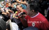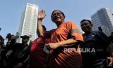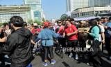Bakal wakil gubernur DKI Jakarta Rano Karno menyapa warga saat berolahraga pada Hari bebas Kendaraan Bermotor (HBKB) di kawasan Bundaran HI, Jakarta, Ahad (8/9/2024). Pramono-Rano pada kesempatannya berbincang sekaligus mendengarkan aspirasi dari sejumlah elemen masyarakat, pecinta hewan dan pewarta foto ditengah aktivitasnya. Terlihat sejumlah warga berebut foto bersama pasangan calon gubenur dari PDI Perjuangan tersebut. (FOTO : Republika/Thoudy Badai)