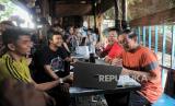 Pasangan bakal calon gubernur dan wakil gubernur DKI Jakarta Pramono Anung dan Rano Karno berbincang dengan pewarta foto di Balai Pewarta Foto Indonesia di Bundaran HI, Jakarta, Ahad (8/9/2024). Pramono-Rano pada kesempatannya berbincang sekaligus mendengarkan aspirasi dari sejumlah elemen masyarakat, pecinta hewan dan pewarta foto ditengah aktivitasnya. Terlihat sejumlah warga berebut foto bersama pasangan calon gubenur dari PDI Perjuangan tersebut. (FOTO : Republika/Thoudy Badai)