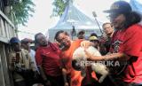 Pasangan bakal calon gubernur dan wakil gubernur DKI Jakarta Pramono Anung dan Rano Karno berbincang dengan pecinta hewan saat berolahraga pada Hari bebas Kendaraan Bermotor (HBKB) di kawasan Bundaran HI, Jakarta, Ahad (8/9/2024). Pramono-Rano pada kesempatannya berbincang sekaligus mendengarkan aspirasi dari sejumlah elemen masyarakat, pecinta hewan dan pewarta foto ditengah aktivitasnya. Terlihat sejumlah warga berebut foto bersama pasangan calon gubenur dari PDI Perjuangan tersebut. (FOTO : Republika/Thoudy Badai)
