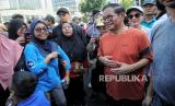 Bakal calon gubernur DKI Jakarta Pramono Anung berbincang dengan warga saat berolahraga pada Hari bebas Kendaraan Bermotor (HBKB) di kawasan Bundaran HI, Jakarta, Ahad (8/9/2024). Pramono-Rano pada kesempatannya berbincang sekaligus mendengarkan aspirasi dari sejumlah elemen masyarakat, pecinta hewan dan pewarta foto ditengah aktivitasnya. Terlihat sejumlah warga berebut foto bersama pasangan calon gubenur dari PDI Perjuangan tersebut. (FOTO : Republika/Thoudy Badai)