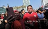 Bakal wakil gubernur DKI Jakarta Rano Karno berswafoto dengan warga saat berolahraga pada Hari bebas Kendaraan Bermotor (HBKB) di kawasan Bundaran HI, Jakarta, Ahad (8/9/2024). Pramono-Rano pada kesempatannya berbincang sekaligus mendengarkan aspirasi dari sejumlah elemen masyarakat, pecinta hewan dan pewarta foto ditengah aktivitasnya. Terlihat sejumlah warga berebut foto bersama pasangan calon gubenur dari PDI Perjuangan tersebut. (FOTO : Republika/Thoudy Badai)
