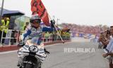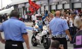 Pembalap MotoGP asal Spanyol Marc Marquez melakukan selebrasi seusai menjuarai ajang MotoGP 2024 San Marino di sirkuit Misano di Misano Adriatico, Italia, Ahad (8/9/2024). Pembalap Gresini Marc Marquez berhasil menjuarai balapan MotoGP San Marino 2024 dengan catatan waktu 41 menit 52,083 detik, mengungguli dua pembalap Ducati Lenovo Team Francesco Bagnaia dan Enea Bastianini. Ini adalah kemenangan kedua Marquez di ajang MotoGP 2024. (FOTO : EPA-EFE/DANILO DI GIOVANNI)