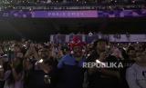 Penonton menyaksikan upacara penutupan Paralimpiade 2024 di Stadion Stade du France, Paris, Prancis, Ahad (8/9/2024). Paralimpiade 2024 resmi ditutup. Upacara penutupan berlangsung meriah. Pada ajang ini, kontingen Indonesia berhasil meraih 14 medali dengan rincian 1 medali emas, 8 perak dan 5 perunggu. (FOTO : AP Photo/Michel Euler)
