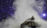Penyanyi Prancis, Santa tampil pada upacara penutupan Paralimpiade 2024 di Stadion Stade du France, Paris, Prancis, Ahad (8/9/2024). Paralimpiade 2024 resmi ditutup. Upacara penutupan berlangsung meriah. Pada ajang ini, kontingen Indonesia berhasil meraih 14 medali dengan rincian 1 medali emas, 8 perak dan 5 perunggu. (FOTO : AP Photo/Thibault Camus)