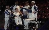 Sejumlah atlet mengikuti upacara penutupan Paralimpiade 2024 di Stadion Stade du France, Paris, Prancis, Ahad (8/9/2024). Paralimpiade 2024 resmi ditutup. Upacara penutupan berlangsung meriah. Pada ajang ini, kontingen Indonesia berhasil meraih 14 medali dengan rincian 1 medali emas, 8 perak dan 5 perunggu. (FOTO : AP Photo/Michel Euler)