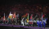 Defile atlet saat upacara penutupan Paralimpiade 2024 di Stadion Stade du France, Paris, Prancis, Ahad (8/9/2024). Paralimpiade 2024 resmi ditutup. Upacara penutupan berlangsung meriah. Pada ajang ini, kontingen Indonesia berhasil meraih 14 medali dengan rincian 1 medali emas, 8 perak dan 5 perunggu. (FOTO : AP Photo/Thibault Camus)