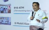 Direktur Penjualan dan Distribusi PT Bank Syariah Indonesia (BSI) Anton Sukarna memaparkan materi dukungan BSI pada gelaran PON XXI Aceh-Sumut 2024 di Landmark BSI Aceh, Banda Aceh, Aceh, Ahad (8/9/2024). BSI meningkatkan kapasitas layanan keuangan dari aspek Insfrastruktur jaringan hingga operasional untuk mendukung kesuksesan gelaran PON XXI Aceh-Sumut 2024.  (FOTO : Dok Republika)