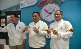 REPUBLIKA.CO.ID, ACEH -- Direktur Penjualan dan Distribusi PT Bank Syariah Indonesia (BSI) Anton Sukarna bersama Regional CEO BSI Aceh Wachjono dan Group Head Corporate Secretary Wisnu Sunandar menunjukan uang elektronik dengan tema PON XXI Aceh-Sumut 2024 di Landmark BSI Aceh, Banda Aceh, Aceh, Ahad (8/9/2024).