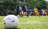 Bintang sepak bola nasional Australia Joshua Kennedy (kiri) menggiring bola saat memberikan coaching clinic di Perguruan Islam Al Syukro Universal, Tangerang Selatan, Banten, Selasa (10/9/2024). Kedutaan Besar Australia bersama dua bintang sepak bola Australia Joshua Kennedy dan Gema Simon mengadakan coaching clinic sepak bola kepada para siswa dalam rangka memperingati Hari Olahraga Nasional dan 75 tahun hubungan diplomatik Australia dengan Indonesia. (FOTO : ANTARA FOTO/Sulthony Hasanuddin)
