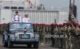 Panglima Komando Armada (Pangkoarmada) II Laksamana Muda TNI Ariantyo Condrowibowo (kedua kiri) menginspeksi pasukan saat upacara peringatan HUT ke-79 TNI AL di Koarmada II, Surabaya, Jawa Timur, Selasa (10/9/2024). Kegiatan itu melibatkan 1.800 personel TNI AL dari Kodiklatal, Koarmada II, Akademi Angkatan Laut, Puspenerbal, Lantamal V serta Pasmar 2 dengan mengangkat tema Dengan Semangat Jalesveva Jayamahe, TNI AL Siap Mewujudkan Nusantara Baru Indonesia Maju. (FOTO : ANTARA FOTO/Didik Suhartono)