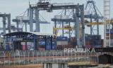 REPUBLIKA.CO.ID, JAKARTA -- Suasana bongkar muat peti kemas di Pelabuhan Jakarta International Container Terminal (JICT) , Tanjung Priok, Jakarta Utara, Selasa (10/9/2024).