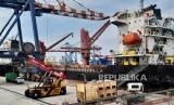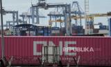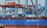 Suasana bongkar muat peti kemas di Pelabuhan Jakarta International Container Terminal (JICT) , Tanjung Priok, Jakarta Utara, Selasa (10/9/2024). Berdasarkan data Badan Pusat Statistik (BPS) mencatat nilai ekspor Indonesia pada Juli 2024 mencapai US$22,21 miliar atau mengalami kenaikan 6,55 persen dibanding bulan Juni 2024 dan Juli 2023 sebesar 6,46 persen. Sementara untuk ekspor nonmigas pada Juli 2024 sebesar US$20,79 miliar naik 5,98 persen dibanding bulan Juni 2024 dan Juli 2023 naik 5,87 persen. (FOTO : Republika/Thoudy Badai)