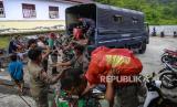 REPUBLIKA.CO.ID, TERNATE -- Pengungsi korban banjir bandang mengunpulkan barang bawaan setibanya di hunian sementara di Kelurahan Jambula Kota Ternate Maluku Utara, Selasa (10/9/2024).