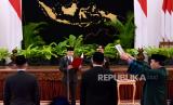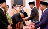 REPUBLIKA.CO.ID, JAKARTA -- Presiden Joko Widodo mengambil sumpah jabatan Saifullah Yusuf dan Irjen Pol Eddy Hartono sebagai Menteri Sosial dan Kepala Badan Nasional Penanggulangan Teroris (BNPT) di Istana Negara, Jakarta, Rabu (11/9/2024).