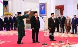 Presiden Joko Widodo mengambil sumpah jabatan Saifullah Yusuf dan Irjen Pol Eddy Hartono sebagai Menteri Sosial dan Kepala Badan Nasional Penanggulangan Teroris (BNPT) di Istana Negara, Jakarta, Rabu (11/9/2024). Saifullah alias Gus Ipul menggantikan Mensos sebelumnya Tri Rismaharini yang mundur usai mendaftar sebagai Calon Gubernur Jawa Timur, sementara Eddy Hartono menggantikan kepala BNPT sebelumnya, Komjen Pol Rycko Amelza. (FOTO : Biro Pers Istana)