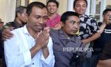 Terdakwa I Nyoman Sukena (kiri) yang didakwa melakukan tindak pidana karena memelihara landak Jawa (Hysterix javanica) keluar ruangan usai menjalani persidangan di Pengadilan Negeri Denpasar, Bali, Kamis (12/9/2024). Dalam sidang dengan agenda pemeriksaan terdakwa tersebut majelis hakim mengabulkan permohonan penangguhan penahanan I Nyoman Sukena yang dialihkan dari tahanan rutan menjadi tahanan rumah. ANTARA FOTO/Fikri Yusuf/Spt. (FOTO : ANTARA FOTO/Fikri Yusuf)