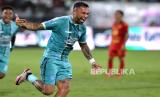 Pesepak bola PSBS Biak Julian Alberto Velazquez berselebrasi usai mencetak gol ke gawang Persija Jakarta pada Liga 1 2024/2025 di Stadion Kapten I Wayan Dipta Gianyar, Bali, Kamis (12/9/2024). PSBS Biak mengalahkan Persija Jakarta dengan skor 3-1. (FOTO : ANTARA FOTO/Fikri Yusuf)