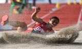 REPUBLIKA.CO.ID, DELI SERDANG -- Atlet lompat jauh Bali Maria Londa melakukan lompatan pada final lompat jauh putri PON XXI Aceh-Sumut 2024 di Stadion Madya Atletik Sumut Sport Center, Deli Serdang, Sumatera Utara, Kamis (12/9/2024).