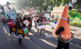 Kemeriahan Pawai Kendaraan Hias HJKB 2024 disertai atraksi unik para pesertanya di kawasan Gasibu, Jalan Diponegoro, Kota Bandung, Jawa Barat, Ahad (15/9/2024). Pawai Kendaraan digelar dalam rangka memeriahkan Hari Jadi Kota Bandung (HJKB) ke-214 yang diikuti oleh sedikitnya 88 peserta dari berbagai instansi, swasta, hingga kecamatan. (FOTO : Edi Yusuf/Republika)