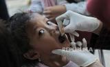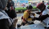 Tenaga kesehatan meneteskan vaksin polio kepada anak saat Hari Bebas Kendaraan Bermotor (HBKB) di kawasan Bundaran HI, Jakarta, Ahad (15/9/2024). Pelayanan gratis tersebut dilakukan untuk mendukung program Pekan Imunisasi Nasional (PIN) Polio 2024 Kementerian Kesehatan guna melindungi dari penyakit polio. (FOTO : Republika/Thoudy Badai)