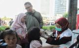Tenaga kesehatan saat akan meneteskan vaksin polio kepada anak saat Hari Bebas Kendaraan Bermotor (HBKB) di kawasan Bundaran HI, Jakarta, Ahad (15/9/2024). Pelayanan gratis tersebut dilakukan untuk mendukung program Pekan Imunisasi Nasional (PIN) Polio 2024 Kementerian Kesehatan guna melindungi dari penyakit polio. (FOTO : Republika/Thoudy Badai)