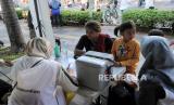 Warga mendaftar vaksin polio saat Hari Bebas Kendaraan Bermotor (HBKB) di kawasan Bundaran HI, Jakarta, Ahad (15/9/2024). Pelayanan gratis tersebut dilakukan untuk mendukung program Pekan Imunisasi Nasional (PIN) Polio 2024 Kementerian Kesehatan guna melindungi dari penyakit polio. (FOTO : Republika/Thoudy Badai)