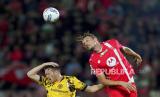 Pemain Inter Milan Matteo Darmian berebut bola dengan Pemain Monza Giorgos Kyriakopoulos saat pertandingan antara Monza dan Inter Milan di Liga Serie A Italia di Stadion U-Power di Monza, Italia, Ahad (15/9/2024). Pertandingan tersebut berakhir imbang 1-1. (FOTO : Spada/LaPresse via AP)
