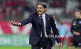Pelatih Inter Milan Simone Inzaghi meneriakkan instruksi saat pertandingan antara Monza dan Inter Milan di Liga Serie A Italia di Stadion U-Power di Monza, Italia, Ahad (15/9/2024). Pertandingan tersebut berakhir imbang 1-1. (FOTO : Spada/LaPresse via AP)