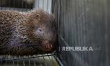 Seekor landak (Hystrix javanica) berada di dalam kandang sebelum diserahkan ke Balai Besar Konservasi Sumber Daya Alam (BBKSDA) di Gedung Ilmu Komunikasi Universitas Padjajaran (Unpad), Kabupaten Sumedang, Jawa Barat, Selasa (17/9/2024). Pusat Studi Komunikasi Lingkungan Unpad menyerahkan seekor landak (Hystrix javanica) yang ditemukan di jalanan Kota Bandung kepada BBKSDA dan nantinya akan dilepasliarkan di Taman Buru Cikareumbi, Kabupaten Sumedang. (FOTO : ANTARA FOTO/Raisan Al Farisi)