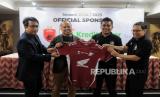 Presiden Direktur Kredit Pintar Ronny Kasim (kedua kiri) bersama Direktur PSM Makassar Rafiuddin Razak (kedua kanan), Direktur Bisnis dan Operasi Kredit Pintar Kokko Cattaka (kiri) dan Direktur Marketing PSM Makassar Danang H Pramono (kanan) menunjukan jersey PSM Makassar usai konferensi pers di Jakarta, Rabu (18/9/2024). Platform fintech lending Kredit Pintar resmi menjalin kerjasama dengan PT Persaudaraan Sepakbola Makassar sebagai official sponsor dari klub sepakbola liga 1 Indonesia PSM Makassar. Kerjasama dan dukungan tersebut merupakan bagian dari komitmen Kredit Pintar dalam memajukan persepakbolaan tanah air. Jalinan kerjasama tersebut berlangsung selama satu musim kompetisi liga 1 2024/2025. (FOTO : Republika/Thoudy Badai)