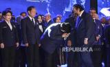 REPUBLIKA.CO.ID, JAKARTA -- Ketua Umum Partai Nasdem Surya Paloh mengukuhkan pengurus Dewan Pimpinan Pusat (DPP) Partai Nasdem usai diumumkan di Jakarta, Kamis (19/9/2024).