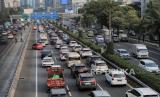 Kendaraan terjebak kemacetan di jalan tol dalam kota di kawasan Semanggi, Jakarta, Jumat (20/9/2024). Jasamarga Metropolitan Tollroad mengumumkan tarif Tol Dalam Kota (Dalkot) akan mengalami penyesuaian keanaikan pada besok, Ahad (22/9) pukul 00.00 WIB. Kenaikan tarif ini berlaku untuk Ruas Tol Cawang-Tomang-Pluit dan Cawang-Tanjung Priok-Ancol Timur-Jembatan Tiga/Pluit. Kenaikan tarif tersebut mengikuti keputusan menteri PUPR No. 2130/KPTS/M/2024 yakni dibagi menjadi beberapa golongan, unfuk Gol I Rp 11.000 dari semula Rp 10.500, Gol II: Rp 16.500, dari semula Rp 15.500, Gol III: Rp 16.500, dari semula Rp 15.500, Gol IV: Rp 19.000, dari semula Rp 17.500dan Gol V: Rp 19.000, dari semula Rp 17.500. (FOTO : Republika/Thoudy Badai)