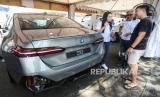 Pengunjung melihat salah satu mobil yang dipamerkan pada pameran mobil ACC Carnival, di Kota Baru Parahyangan, Bandung, Sabtu (21/9/2024). Astra Credit Companies (ACC) menggelar ACC Carnival Bandung dengan berkolaborasi bersama brand-brand otomotif terkenal melalui penawaran promo bunga nol persen tenor 1 tahun untuk semua kendaraan passenger car dengan Down Payment (DP) minimal 50 persen. (FOTO : Dok Republika)